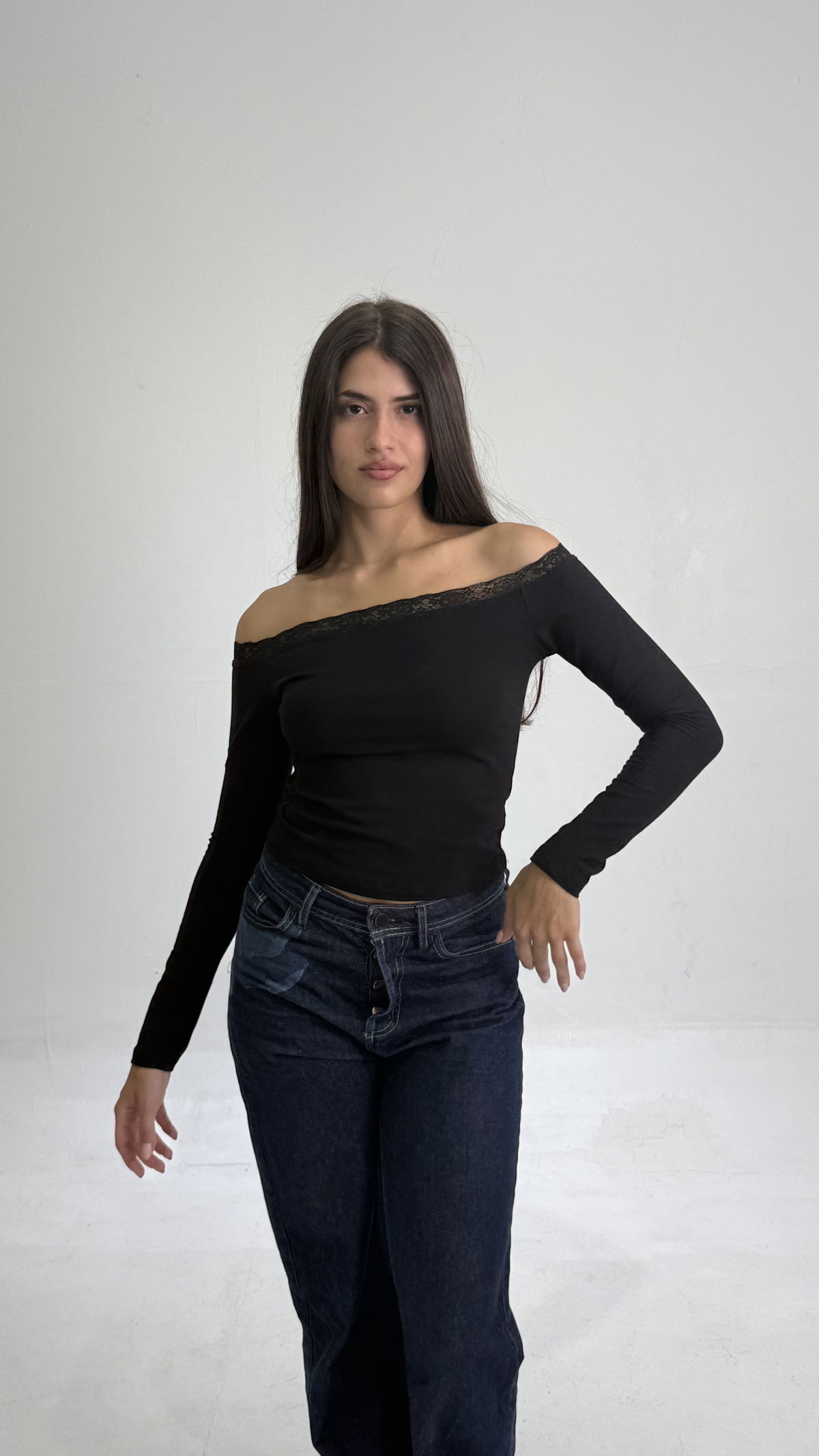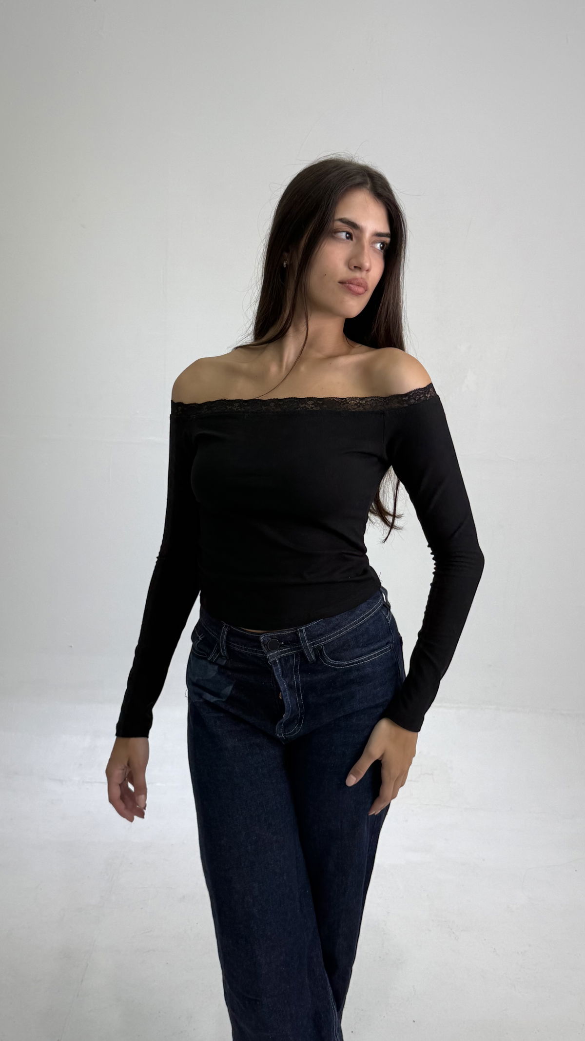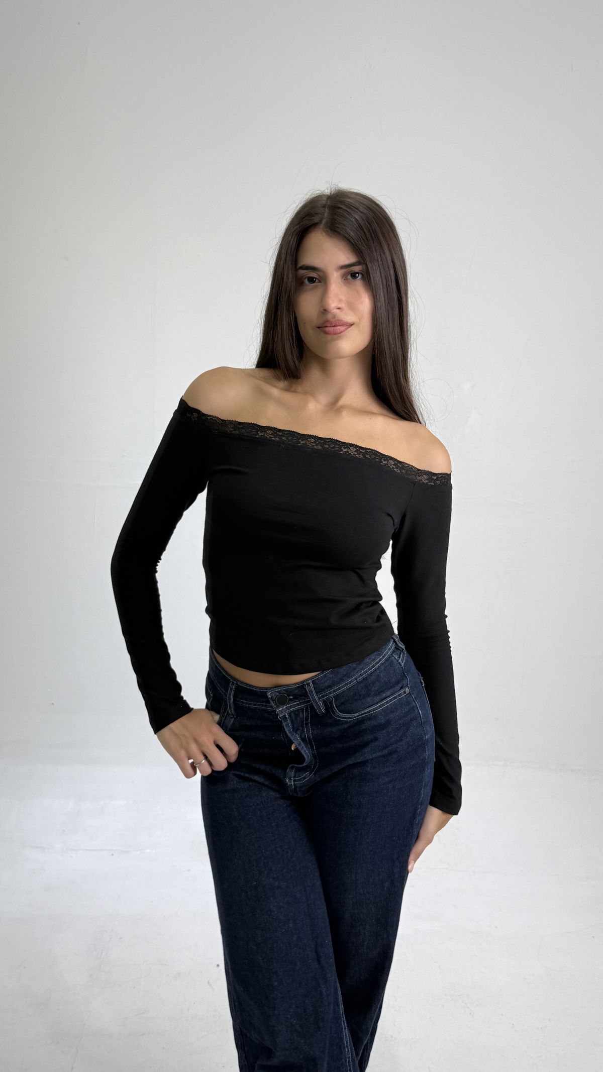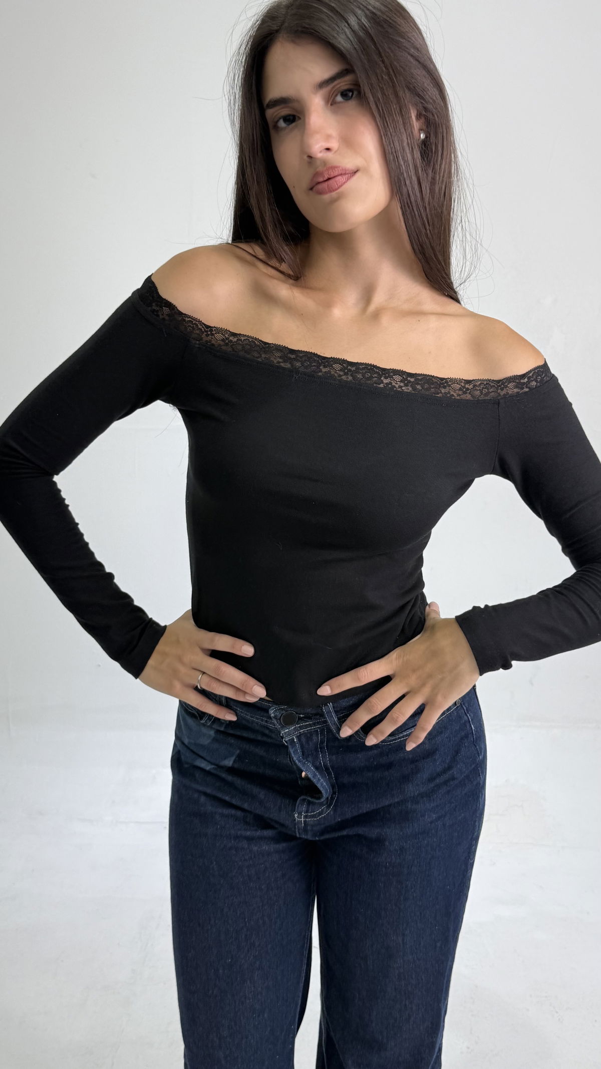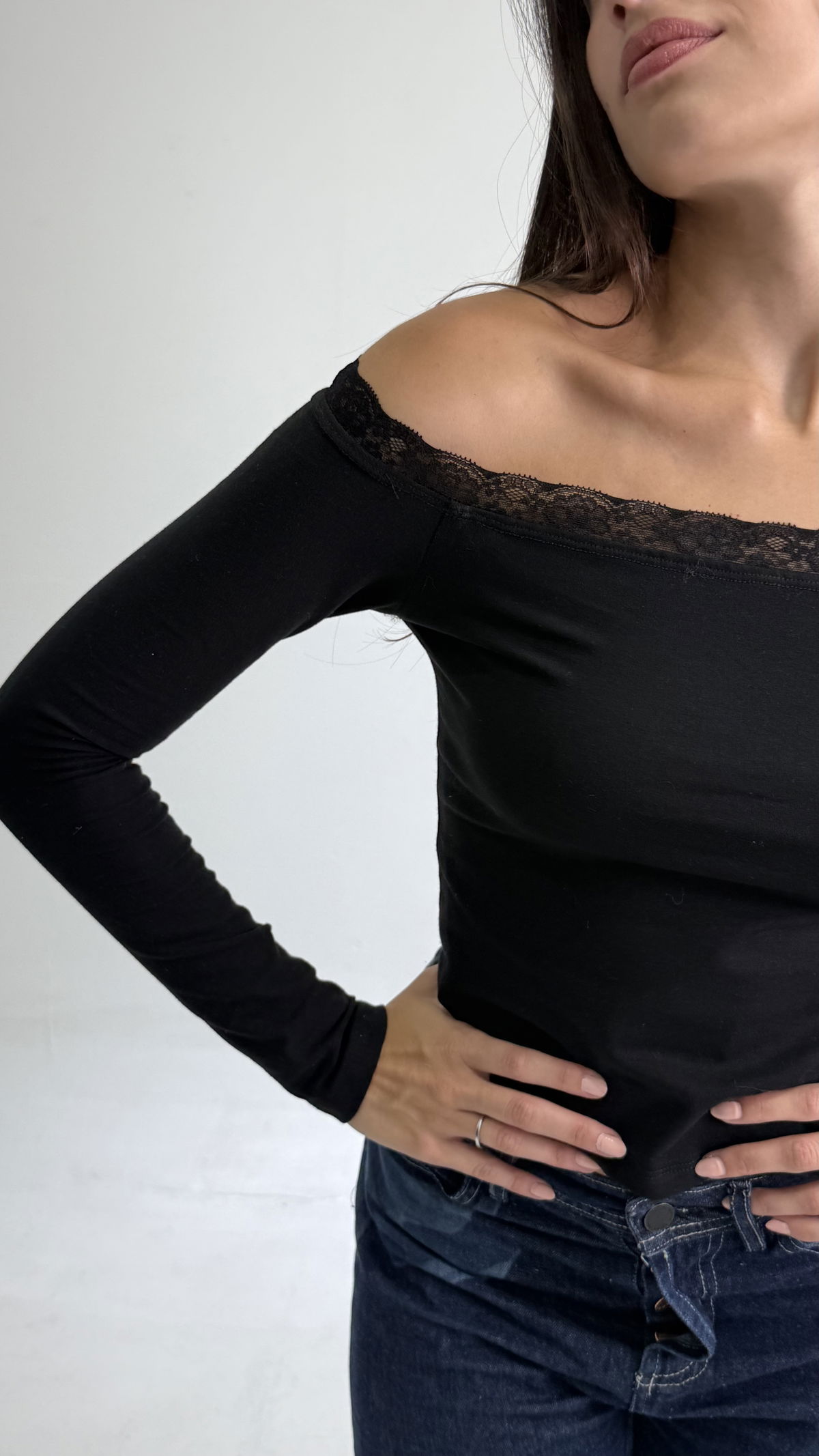 Remera corte Baby tee. Tela Algodón C/Lycra y puntilla encaje en el contorno del torax
